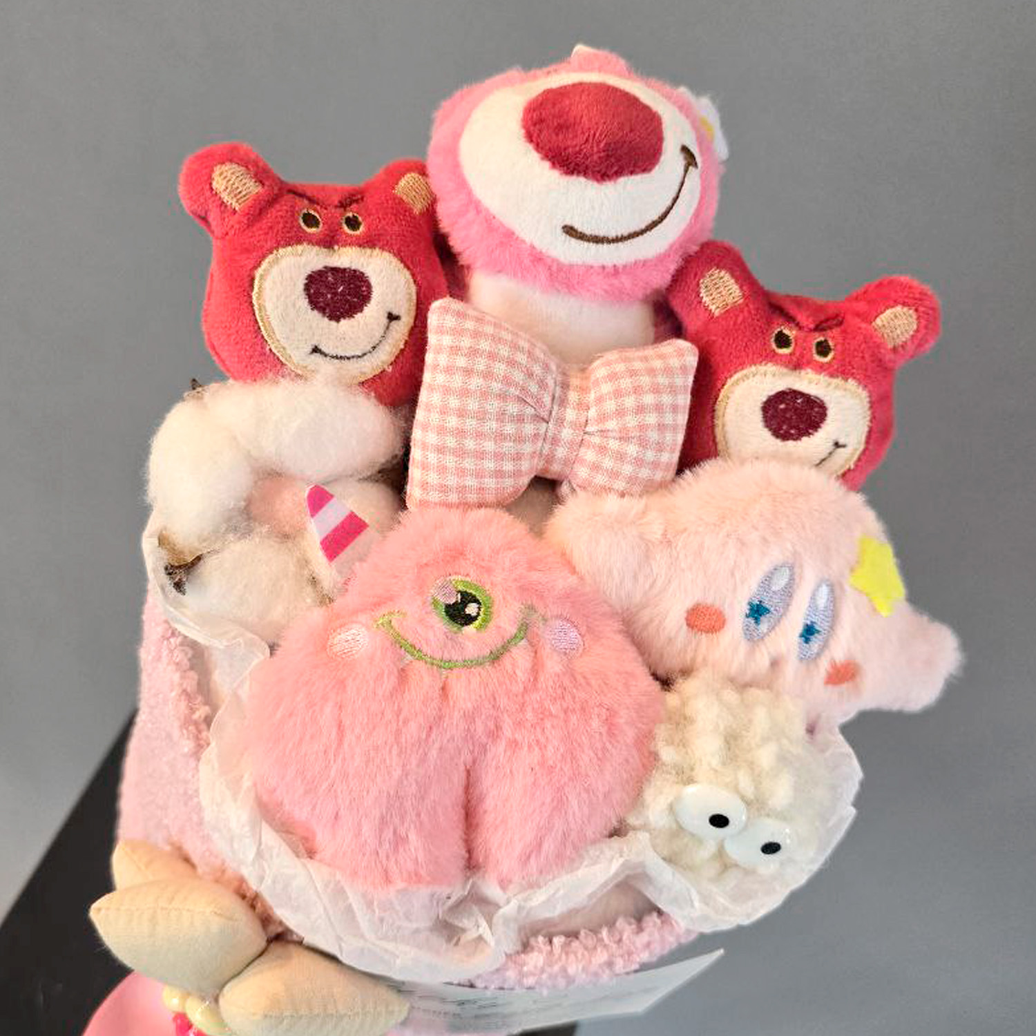 Букет из мягких игрушек будет долго радовать ребенка и станет настоящим украшением детской комнаты