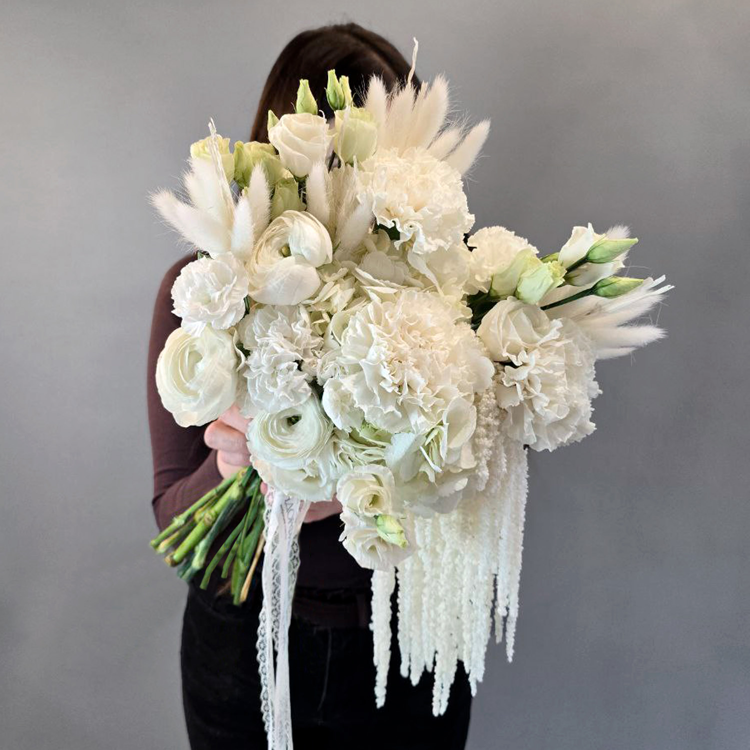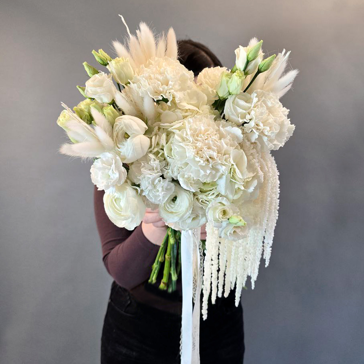 Состав: ранункулюс, эустома, диантус, диантус кустовой, лагурус, амарант