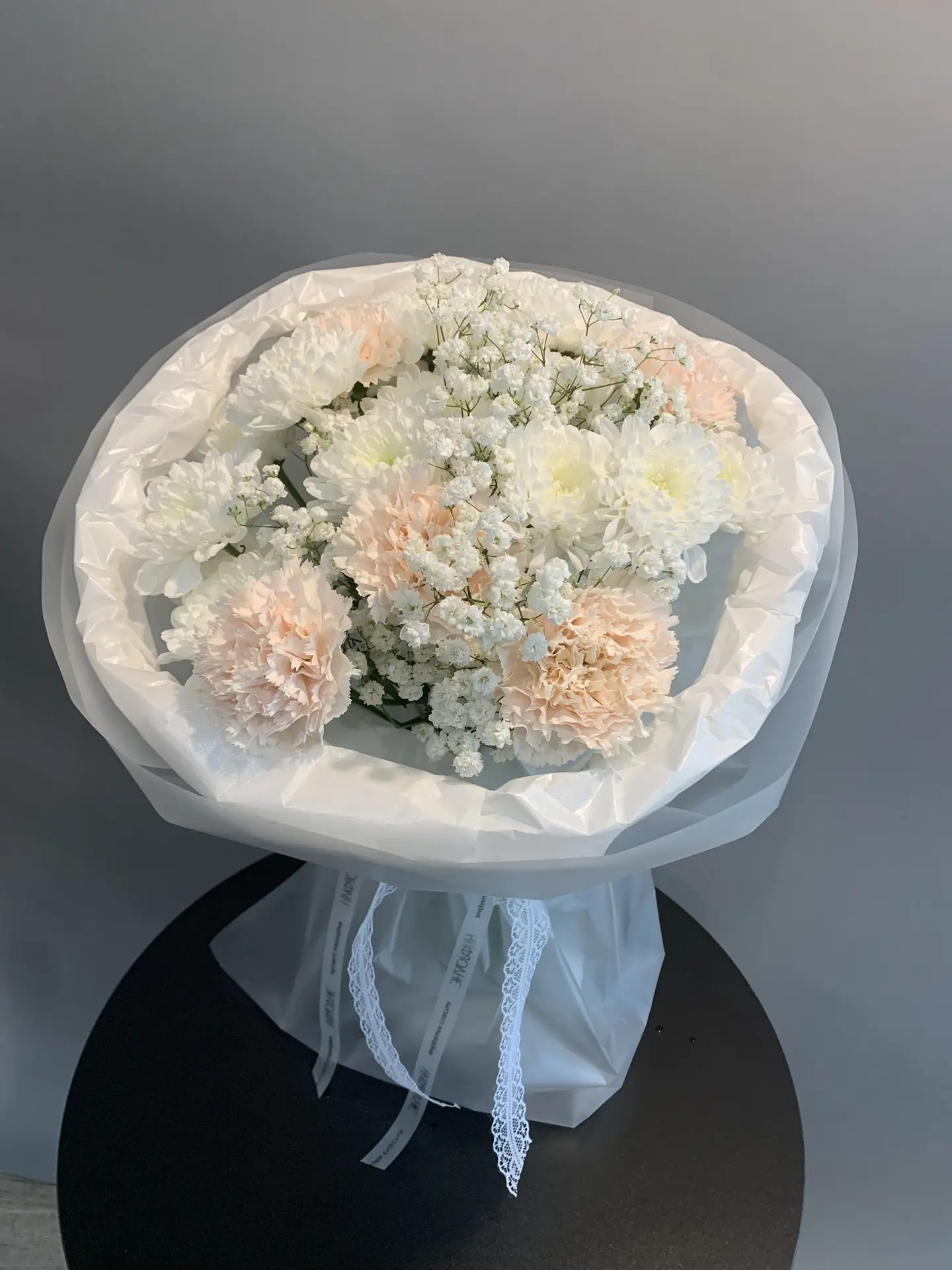 Состав: хризантема Алтай, гипсофила, диантус одноголовый.