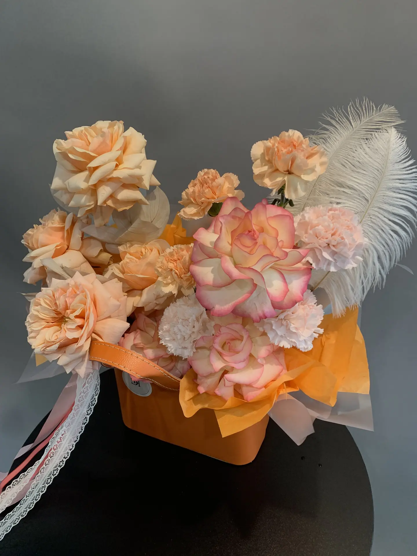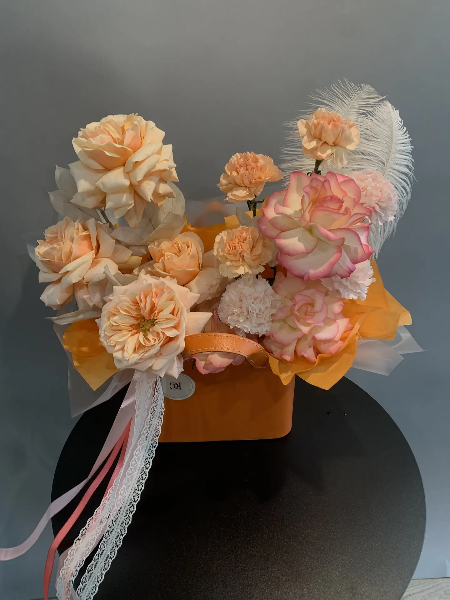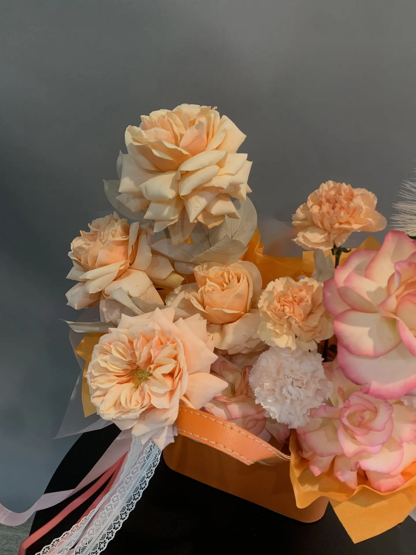 Состав: французская роза Kahala, роза Джумилия, диантус одноголовый.